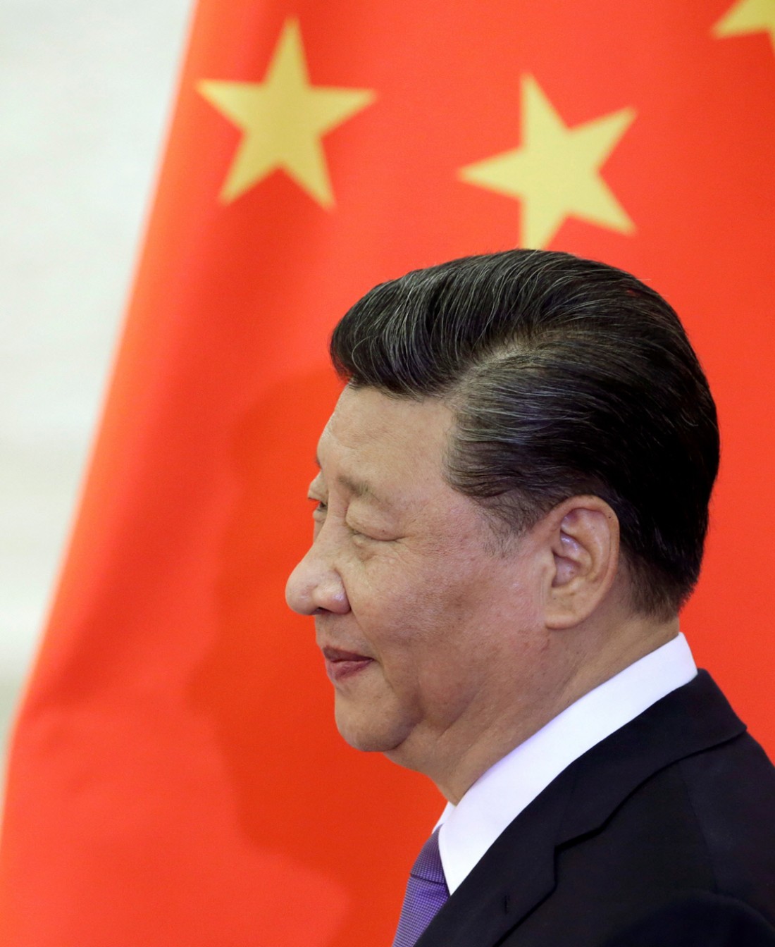 시진핑 중국 국가주석이 지난 14일 베이징 인민대회당에서 열린 제1회 아시아 문명대화 대회장에서 서 있다. 베이징/로이터연합뉴스