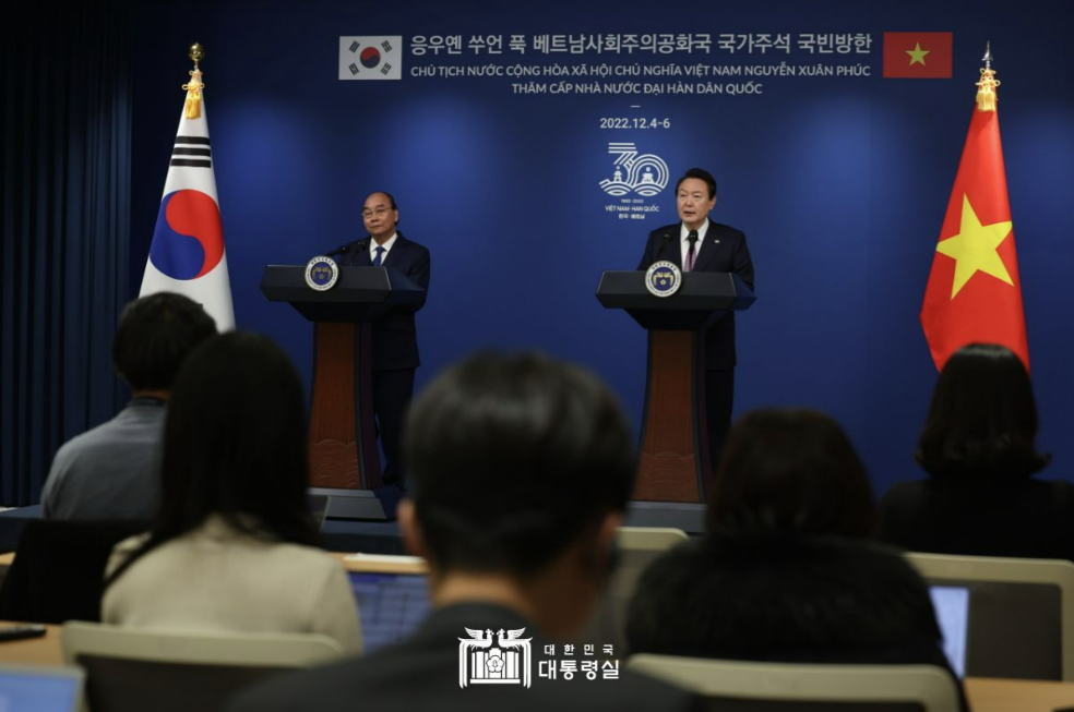 At the invitation of President of the Republic of Korea Yoon Suk-yeol, President of the Socialist Republic of Vietnam Nguyen Xuan Phuc paid a State visit to the Republic of Korea from December 4 to 6, 2022. During the visit, President Nguyen Xuan Phuc held talks with President Yoon Suk Yeol and held meetings with senior leaders of the Republic of Korea. The two countries' senior leaders highly appreciated the rapid and effective development of the two countries' relations over the past 30 years, especially since the establishment of the "strategic cooperation partnership" in 2009, exchanging in-depth opinions. on the direction of developing relations in the coming time and on regional and international issues of mutual concern.