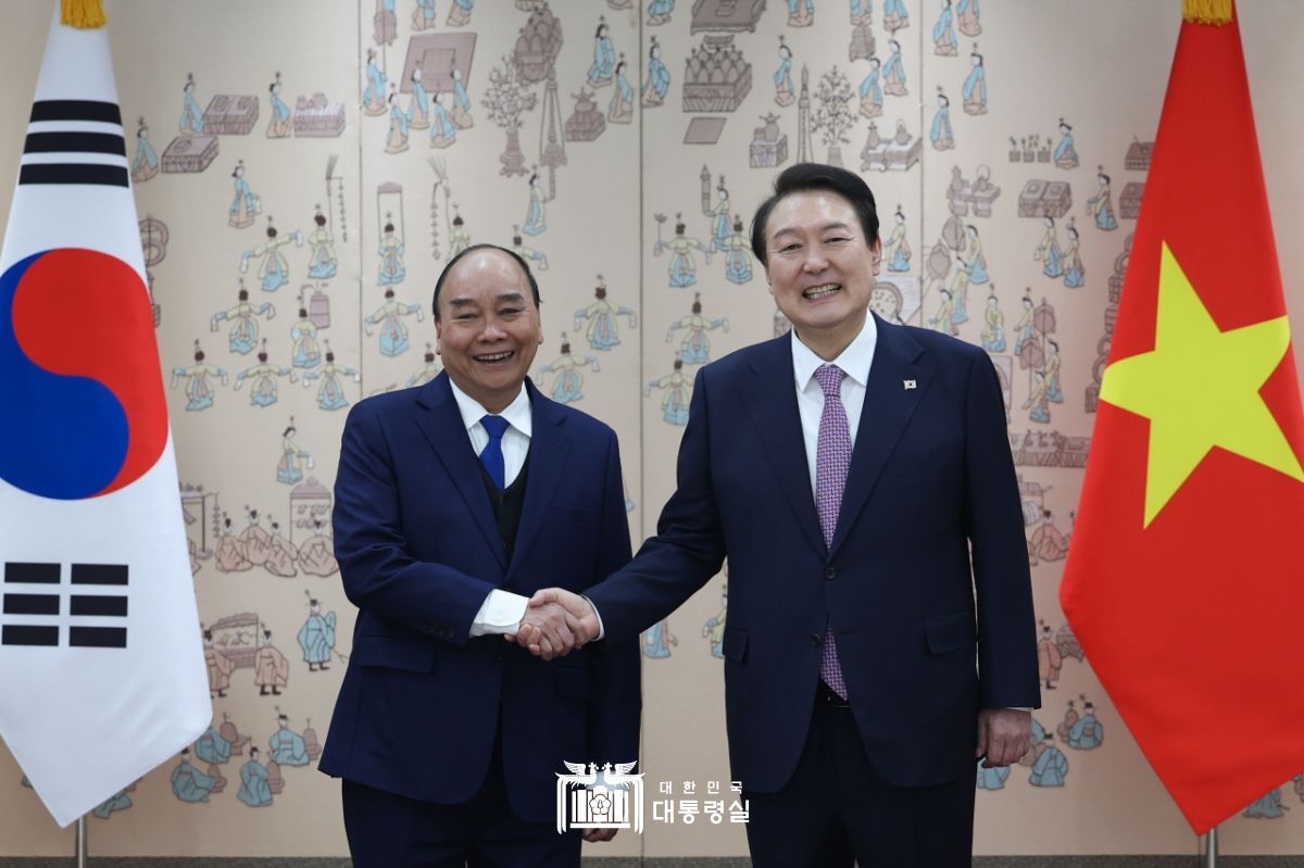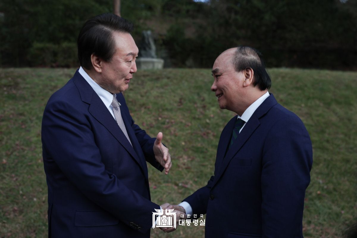 President Nguyen Xuan Phuc sincerely thanked South Korean President Yoon Suk-yeol for the warm and respectful welcome to the high-ranking Vietnamese delegation during the State visit to Korea and cordially invited Mr. President Yoon Suk-yeol and his wife visit Vietnam as soon as possible. President Yoon Suk-yeol sincerely thanked and happily accepted.