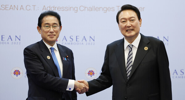 일본과의 군사협력은 한·미·일 정보보호약정(TISA)과 한·일 정보보호협정(GSOMIA) 및 한·일 상호군수지원협정(ACSA) 등 3개의 축으로 돼 있다. 3국 미사일 경보 훈련의 근거인 TISA는 한·미·일 정상이 지난해 11월 13일 프놈펜 공동성명에서 "미사일 경보 정보 실시간 공유"에 합의했다. 미국을 통해 간접 공유하던 방식에서 직접 공유로 바뀐다. 일본의 화이트리스트 배제 탓에 논란이 많았던 GSOMIA는 살아 있지만, 정상가동되지 않고 있다. 문제는 ACSA이다. 2015년 10월 나카타니 일본 방위상이 "한국의 유효 지배 영향이 미치는 영역은 휴전선 이남"이라면서 북한에 대한 한국의 영토고권을 부인, 체결이 불발됐었다. 윤석열 정부에서 어떻게 처리할 지 주목 또는 걱정되는 대상이다.