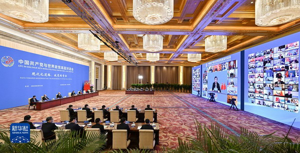 Xi Jinping stressed that the CPC is committed to strengthening exchanges and cooperation with other political parties to pursue the just cause together. The CPC is ready to deepen interactions with political parties and organizations in other countries to expand the convergence of ideas and interests. He called on all to leverage the strength of a new type of party-to-party relations for the building of a new type of international relations and expand global partnerships by fostering stronger partners with world political parties. The CPC stands ready to share governance experience with political parties and organizations of other countries so that together we can make big strides on the path to modernization toward the goal of building a community with a shared future for mankind.