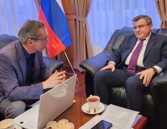 "대사로 부임한 지 5년이 다 돼간다. 그동안 한국 기자들에게 해온 말을 전하고 싶다. 한국 언론이 국제 문제를 조명할 때 놀라운 특징이 있다. 한반도 문제와 남북 관계, 한미 관계, 한일 관계, 어느 정도의 한중 관계 등 5가지 주제에 관해서만 기사를 작성하고, 독립적인 분석도 한다. 칼럼도 많이 쓴다. 이를 제외한 다른 국제정치 문제는 거의 100% 서방 매체에 의존한다. 한국 언론의 이러한 특징이 어떻게 생겼는 지 나는 모른다. 내가 평가하거나, 간섭할 사안도 아니다. 그러한 특징이 있기 때문에 우크라이나 문제나 다른 지역 문제를 보도할 때 편파성이 있을 수밖에 없다. 그래서 한국 국민이 이러한 언론을 통해 큰 그림을 그리지도, 독립적인 분석을 하지도 못하게 된다. 지난 5년 동안 러시아와 한국 관계에 대해 오피니언 기사를 읽어본 적이 거의 없다. <시민언론 민들레>와 첫 인터뷰지만, 마지막 인터뷰가 되지 않길 바란다. 가까운 시일 내 다시 만나 시간을 충분히 갖고 이야기를 나눴으면 한다."