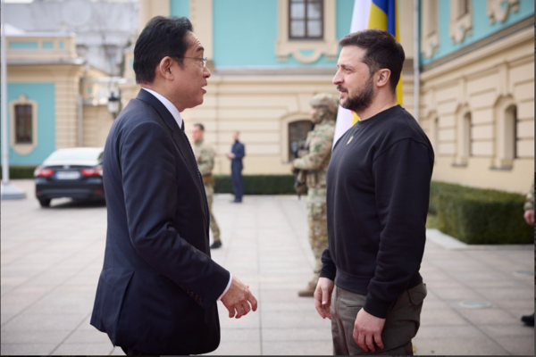 전쟁 발발 1년에 즈음해 지난 2월 20일 키이우를 찾은 조 바이든 미국 대통령은 전쟁 수행에 필요한 무기 지원과 전범 특별재판소 설립의 필요성을 강조했다. 백악관이 게시한 바이든-젤렌스키 대담록 어디에도 비즈니스로서의 '재건'은 보이지 않았다. 3월 21일 우크라이나를 방문한 기시다 후미오 총리 역시 마찬가지였다. 미국을 비롯한 북대서양조약기구(나토) 회원국들과 달리 살상무기를 지원하지 않는 만큼 인도적, 경제적 지원을 강조했다. 섣불리 우크라이나의 승전을 기원하지도 않았다. "일본은 우크라이나의 아름다운 영토에 평화가 돌아올 때까지 계속 지원하겠다"는 외교적인 수사에 그쳤다. 젤렌스키는 "일본의 지원이 70억 달러에 달했다"면서 "수소장비 생산과 의료시설 복원에 지원을 집중해달라"고 제안했다.