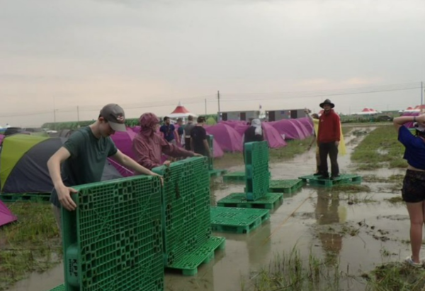소셜미디어(SNS)에서는 대회 전부터 우려가 쏟아졌었다. 영국인 마크 파리스는 지난달 31일 자신의 트위터계정에 빗물에 잠긴 새만금 야영장 사진과 동영상을 올려 "걱정하는 부모의 한 사람으로 묻는다 '플랜B(대안)'는 무엇인가. 행사장에 이미 도착한 참가자들은 벌써 떠나기를 원하는데 24시간 내 4만 3000명이 몰려온다"고 적었다. 엘리자베스 미즈는 1일 역시 아들이 보내온 물에 잠긴 야영장 사진을 올리며 "일사병과 홍수, 모기, 더운 밤의 불청객이 뒤섞였다"는 아들의 소감을 전했다.