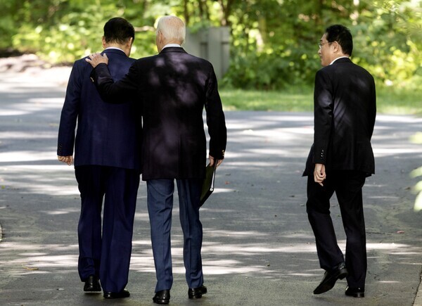 일본의 후쿠시마 핵오염수 방류로 덮이고 있지만, 한미일이 지난 18일 캠프 데이비드 정상회의에서 도출한 결과는 한반도 안보에 긴 파장을 예고한다. 금메달은 당연히 조 바이든 미국 대통령의 차지다. 회의 장소를 결정하고, "미국 외교의 오랜 꿈을 달성(뉴욕타임스)"했다.