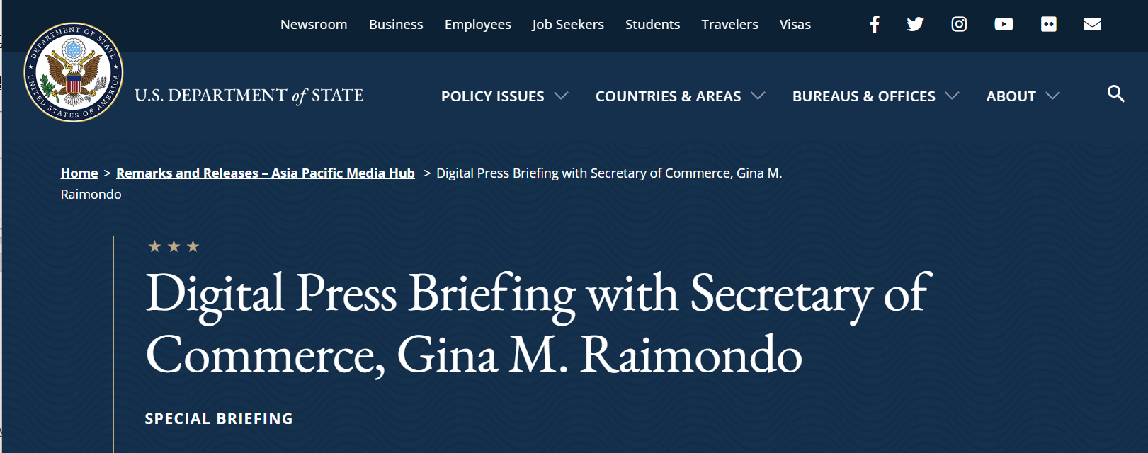 Digital Press Briefing with Secretary of Commerce, Gina M. Raimondo