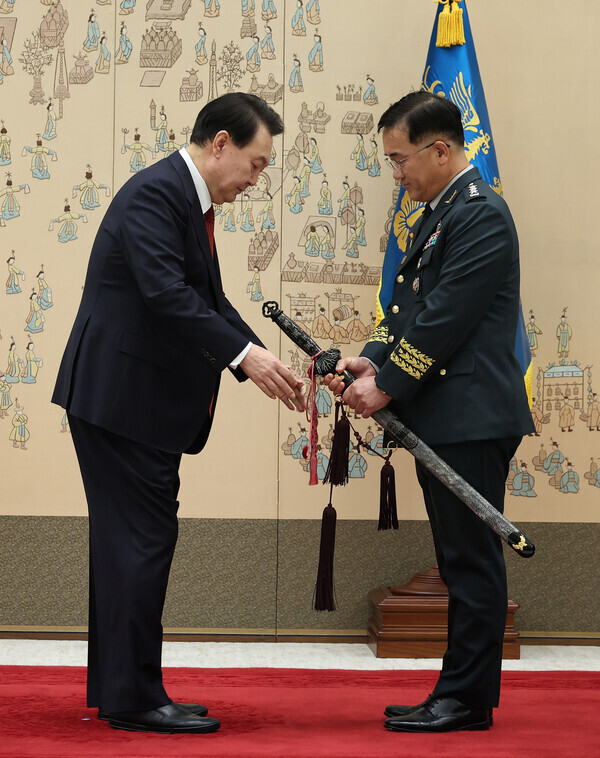 통수권자 및 경호처장과 눈에 띄는 학연 관계가 있다면 주요 보직 임명을 피하는 게 상책이다. 그러나 윤석열 정부는 객관적인 시선·비판·우려를 깡그리 무시해 왔다. 이번 인사에서도 채 상병 사망 당시 해병 1사단장(임성근 소장)이 거뜬하게 별자리를 유지했고, 지난해 북한 무인기의 서울 상공 비행에 부실 대응했던 강호필 육군 제1군단장은 되레 영전했다. 반성도, 책임도 없는 인사였다. 그러나 여인형 장군의 승진·보직 인사는 뚜렷하게 궤를 달리하는 사안이다. 다른 자리가 아닌, 방첩사령관이기 때문이다.
