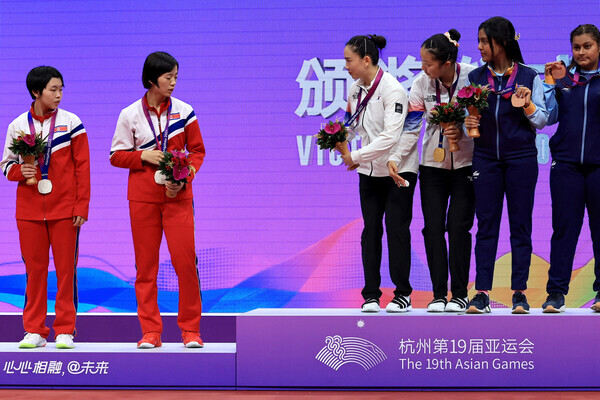 추석 연휴 기간과 겹친 중국 항저우 아시안 게임은 남과 북의 떨어진 거리를 실감케 한 자리였다. 북측 선수단과 임원들은 종목마다 남측 선수와 취재진을 의도적으로 외면했다. 일부 종목 단일팀을 꾸렸던 2018년 자카르타·팔렘방 아시안게임의 추억은 까마득한 과거가 됐다. 되레 한반도 남측 곳곳에서 온갖 전투, 전쟁 기념식이 곳곳에서 열렸다. 윤 대통령은 9·15 인천상륙작전 전승 73주년 기념행사를 대통령으론 처음으로 주관했다.