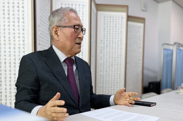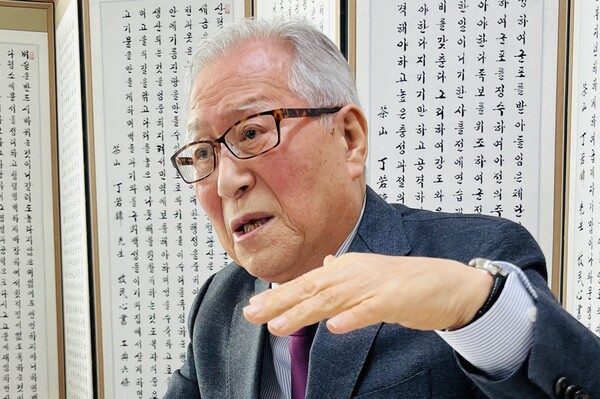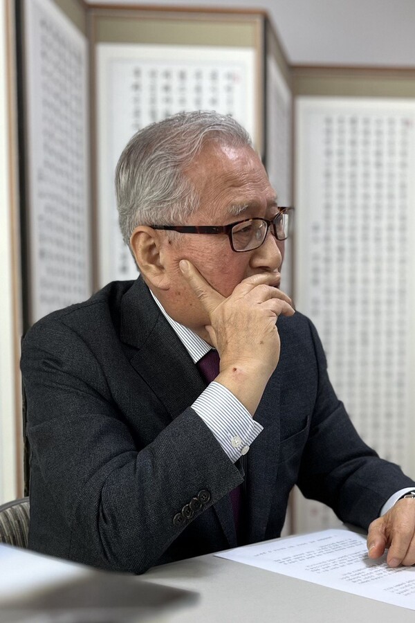 정세현 전 통일부 장관이 지난 14일 서울 마포구 사단법인 한국통일협회 사무실에서 시민언론 민들레와  인터뷰를 하고 있다. 2024.2.15. 김성진 기자