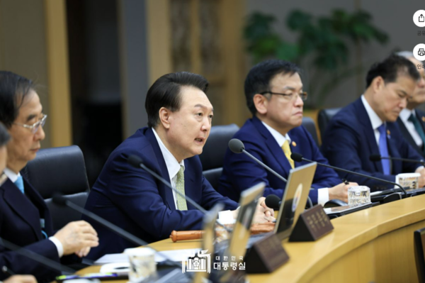 윤석열 대통령은 2일 굳이 세종시까지 달려가 연 국무회의 모두발언에서 "북한 정권이 미사일을 비롯한 군사 도발을 계속하면서 총선을 앞두고 우리 사회를 흔들려 하고 있다"고 강조했다. 그러나 김 장관과 통일부의 '분열 책동' 주장과 사뭇 다른 말을 덧붙였다. "이러한 도발은 우리 국민의 마음을 더 단단히 하나로 묶을 뿐"이라고 자신감을 내비쳤다. 다만 대통령의 이날 발언은 올해 들어 내놓았던 입장과 사뭇 결이 달랐다.