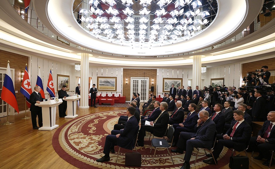 Today, we held constructive talks covering the entire scope of our practical cooperation. We signed a new interstate treaty, the Treaty on Comprehensive Strategic Partnership, which outlines large-scale objectives and guidelines for deepening Russia-DPRK links for the long term, including in politics, trade and investment, culture, humanitarian affairs and security.
