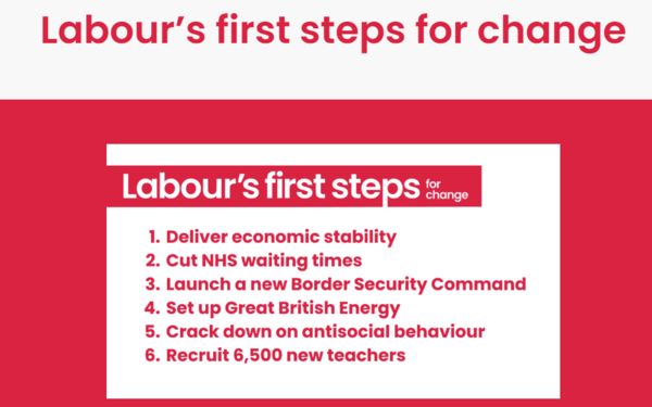 제1공약인 경제적 안정은 노동당식 성장정책이다. 성장을 촉진하기 위한 기업과 새로운 파트너십을 강조하지만, 노동자의 권리를 강화한 '노동자 뉴딜 정책'의 전제가 달려 있다. 자본이득세와 상속세를 올려 공공부문 예산에 투입할 계획이다. 교사 충원 재원은 사립학교 세제 혜택을 중단해 마련할 방침이다. 의원내각제에서 집권당의 공약은 곧바로 법제화된다. 스타머 내각은 5일 출범한다.