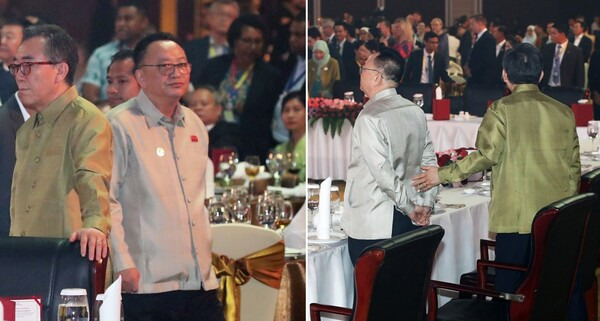 7월 말, 남북이 만난 기억할 장면은 또 있었다. 아세안 외교장관 회의 만찬이 있었던 지난 26일 라오스 비엔티안의 국립 컨벤션센터에서다. 조태열 외교장관과 리영철 주라오스 북한 대사의 어색한 조우. 처음 조 장관을 알아본 리 대사가 그냥 지나쳤고, 나중에 리 대사의 존재를 확인한 조 장관이 다가가 인사를 건넸다.