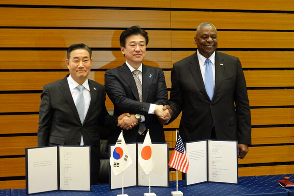 The three defense leaders will further develop trilateral cooperation to effectively address regional challenges, provocations, and threats.