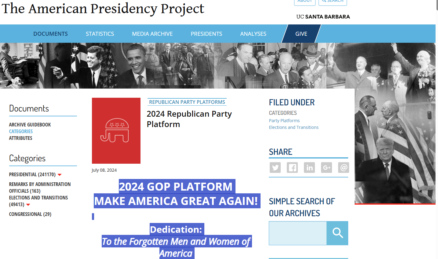 APP Note: This platform was approved and made public by the platform committee on July 8, 2024 and formally adopted at the Republican National Convention on July 15, 2024.