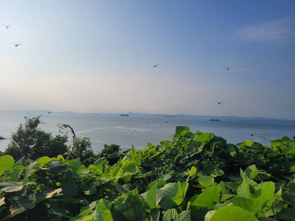 연평도 망향동산에서 바라 본 북측 해역. 눈 앞의 섬들은 모두 북측 영토다. 오른쪽이 3㎞ 거리의 석도이고 그 중간쯤에 유엔군 사령관이 일방적으로 설정한 북방한계선(NLL)이 지난다. 왼쪽은 북측 1개 중대가 각각 주둔하고 있는 장재도, 갈도. 연평도와 달리 군부대 외 민간인이 거주하지 않는다. 2024.9.3. 시민언론 민들레
