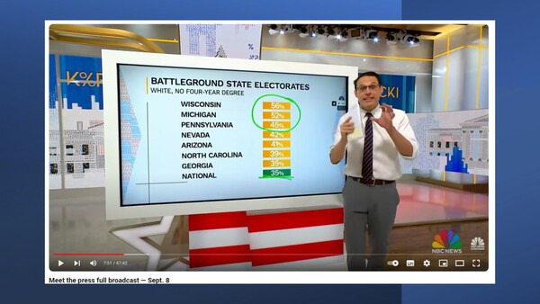 해리스가 유일하게 앞선 위스콘신은 고졸 이하 백인 비율이 56%로 숨은 트럼프 지지자가 가장 많은 주로 꼽힌다. 실제 투표 결과가 여론조사와 다르게 나올 가능성이 높기 때문이다. 힐러리 클린턴은 2016년 이날 현재 트럼프에 6.8%P 앞섰지만, 선거에선 졌다. 버락 오바마 전 대통령이 이날 펜실베이니아를 시작으로 경합주 지원 유세에 나섰지만, 판세를 뒤집을지 불투명하다. 지난 7일 트럼프의 펜실베이니아 유세에는 테슬라 최고경영자 일론 머스크가 이미 '치어리더 역할'을 톡톡히 했다. 트럼프는 산업 황폐화 지역(Rust Belt)의 한 곳인 위스콘신만 최근 8일간 4번 방문했다.