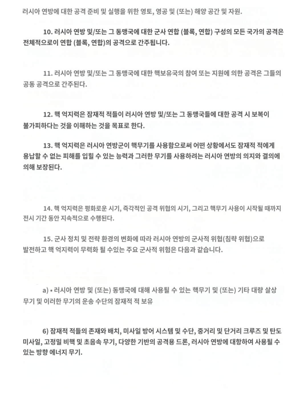 🔹The Russian Federation ensures nuclear deterrence ((toward a potential adversary)), which is understood to mean any individual states or military coalitions (blocs, alliances) which see the Russian Federation as a potential adversary and possess nuclear arms and/or other weapons of mass destruction or conventional forces with a significant combat capability. Nuclear deterrence is also ensured toward any states which provide the territory, airspace, and/or maritime space under their control as well as resources for preparing and conducting an aggression against the Russian Federation.