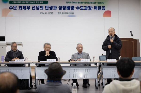 10월 28일은 동학을 창도한 수운 최제우 대신사 탄신 200년이 되는 날이다. 이를 기념해 '민족의 화해와 평화를 위한 종교인모임'과 평화재단이 11월 25~27일 경주와 남원, 공주를 거쳐 서울 종로 천도교 중앙 대교당까지 순례 행사를 했다. 6대 종단 종교인이 함께 밟은 길이기에 의미가 깊었다. 세 차례의 대화마당(세미나)을 통해 수운의 뜻을 되새기고 동학이 3.1운동과 이후 한국 민주주의에 끼친 영향을 되돌아보았다. <시민언론 민들레>는 전 일정을 함께 했다. 그 대강을 전한다.