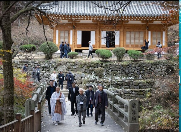 만추의 화창한 날이었다. 지난 25일 오후 경주 용담정. 노란 은행잎과 단풍이 어우러진 깊은 가을의 화창한 날이었다. 넓지 않은 방 안에 20여 명이 앉았다. 의식에 필요한 것은 향과 물, 마음뿐이었다. 청수를 올리고, 심고한 뒤 주문을 세 번 연송했다. 심고(心告)는 눈을 감고 내면의 한울님에게 고하는 것. 6대 종단 종교인과 평화재단, 사회 인사들이 모였다. 수운 최제우 대신사(大神師) 탄신 기념 순례에 나선 천도교, 대한성공회, 개신교, 원불교, 천주교, 불교도들이 박남수 전 천도교 교령(82)의 설명에 귀를 기울였다.