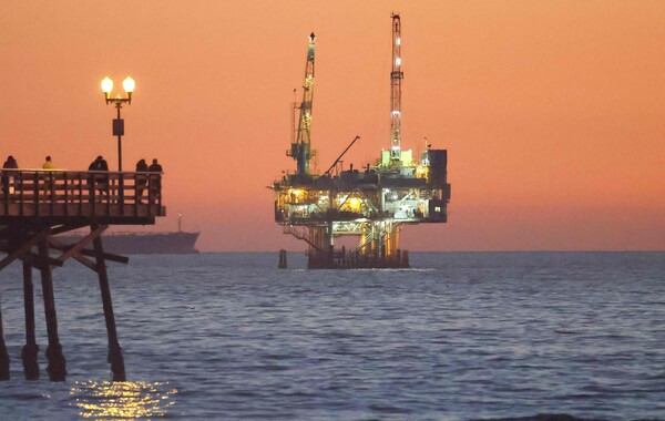 5일 미국 캘리포니아주 실 비치에서 바라본 에스더 해상 원유-가스 플랫폼. 시추하고 또 시추하라(drill, baby, drill)을 대선공약으로 내건 도널드 트럼프 대통령은 미국이 보유한 막대한 원유-가스 매장량을 총동원해 최강의 제조업 국가로 복귀하겠다고 밝혔다. 2025.1.5. AFP 연합뉴스