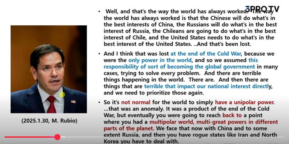SECRETARY-DESIGNATE RUBIO: All right. (So while America too often prioritized the global order above our core national interest,) other nations continued to act the way nations have always acted and always will: in what they perceive to be their best interest. (And instead of folding into the post-Cold War global order,) they have manipulated it to serve their interests at the expense of ours.