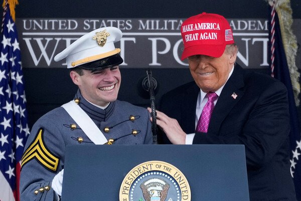트럼프 대통령이 지난 24일 미 육군사관학교(웨스트포인트) 졸업 연설에서 이례적으로 '동맹'이라는 단어를 언급했다. 2017년 취임사는 물론 2025년 취임사에서도 없었던 일이다. "미국이나 동맹이 위협 또는 공격을 받으면 압도적인 군사력으로 적을 섬멸하겠다"는 다짐이 그것이다. 이전에는 '동맹'을 언급하지 않은 채 '미국을 약탈하는 존재' 정도로 말했다. 한미동맹에 포획된 관점에서 들으면 듬직한 말이 아닐 수 없다. 그러나 트럼프에게 미군의 최전선은 한반도나 인도·태평양 지역이 아니다. 이날도 미국의 국경이 미군이 지켜야 할 보루임을 되풀이 강조했다. "미국이 다른 모든 나라의 국경을 지켜주는 동안 정작 미국 국경이 침공당하던 시대는 끝났기 때문"이다.