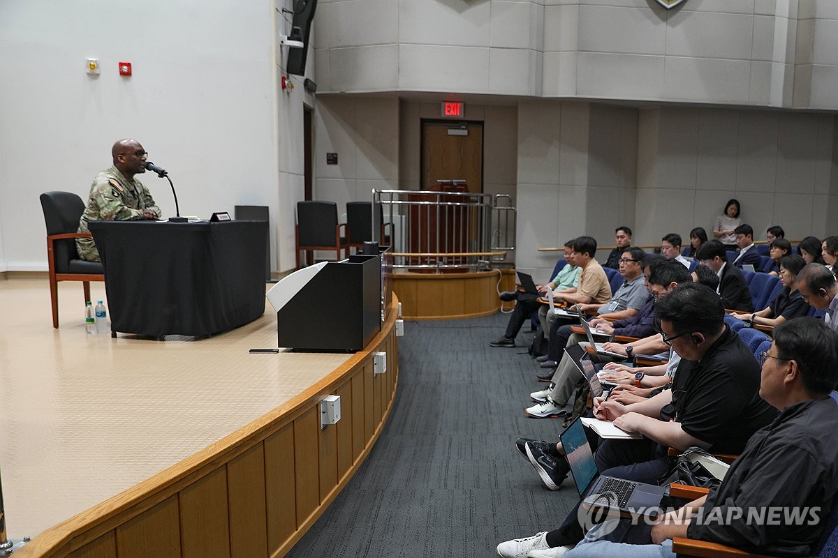 Reporter: A reporter from Herald Economy, the Head Coordinator of the MND Press Pool. Thank you for keeping — living up to your promise that you made to us in Yongsan approximately 100 days ago. I'd like to thank Colonel Donald and Mr. David Kim and all the staff at the PAO office for setting this up. Since I have the mic, I'd like to take advantage of this opportunity to give you a short question regarding UFS. There have been some adjustments made to the — there are statements made about the adjustments within Korea about UFS. I'd like to hear your thoughts briefly on that.