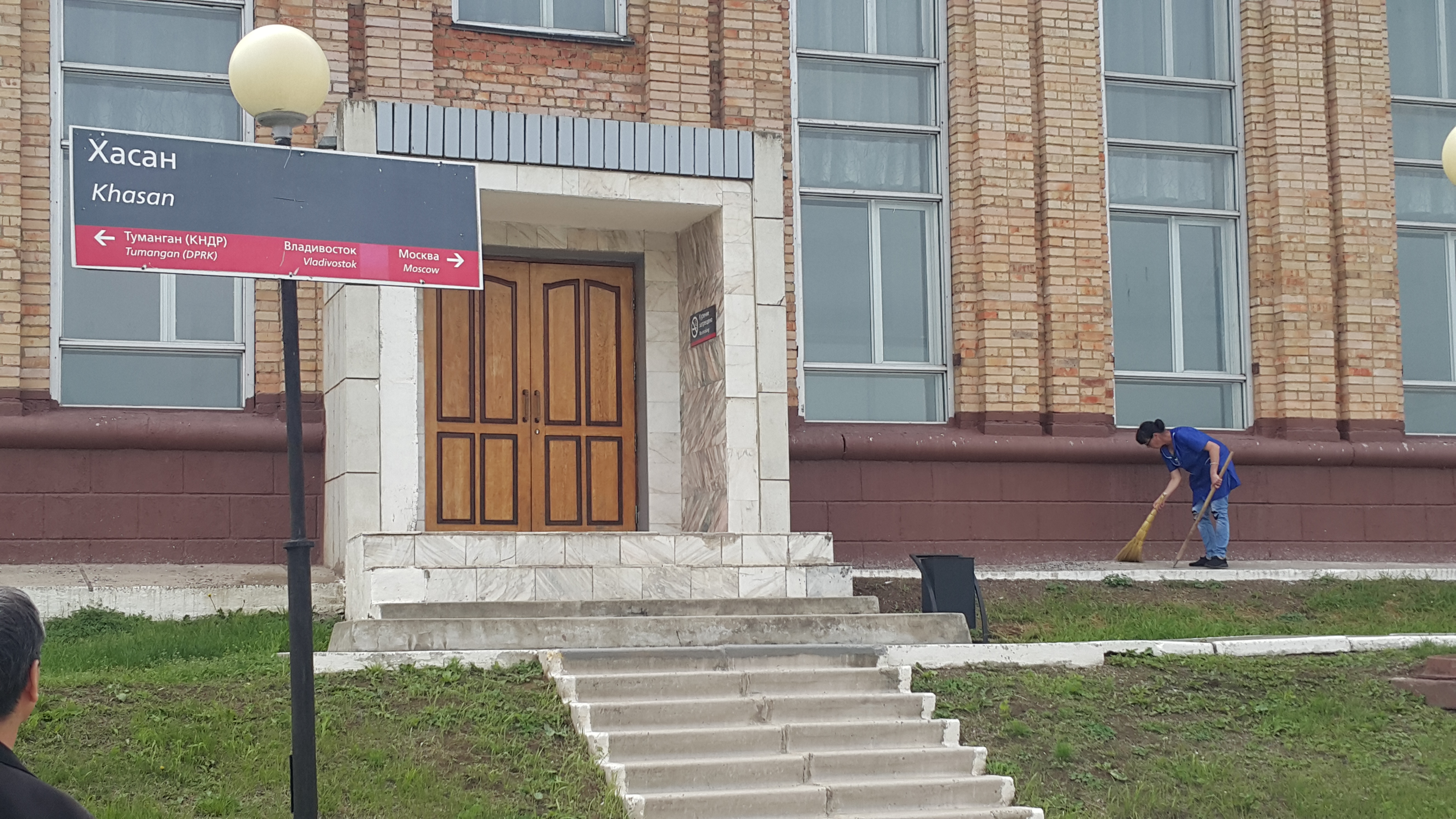 “그냥 왔었다.” 지난 6일 오후 러시아 프리모르스키주(연해주)의 하산역. 역장을 대신해 나온 중년의 역무원 타티아나는 지난 4월24일 하산역에 내려 러시아 땅을 처음 밟은 김정은 북한 국무위원장에 관한 몇 가지 질문에 단 한마디 답변만 내놓았다. 다른 질문엔 입을 닫았다. 전용열차에서 내린 김 위원장은 하산역 앞에서 빵과 소금을 대접받았다. 일반인의 접근이 통제되는 군사지역 특유의 통제된 분위기가 감돌고 있었다. 눈앞에 빤히 보이는 야트막한 야산에 오르면 두만강 건너 북한 땅이 보이련만, 역 관계자들은 역사에서 30여m 떨어진 선로 위 육교에 오르는 것만을 허용했다. 육교에선 두만강 위에 놓인 ‘조선-로씨야(북-러) 우정의 다리’의 난간 지붕만 시야에 들어왔을 뿐, 강을 볼 수 없었다. 다리 옆 조-로 친선각 역시 야산에 가렸다.