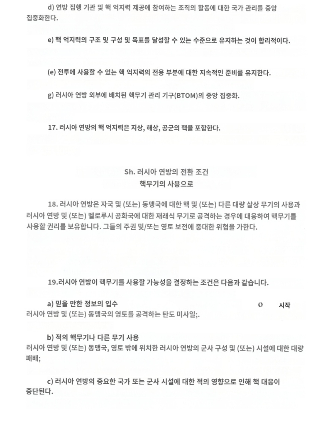 푸틴 개정 핵교리 행정명령 발표(20241119)