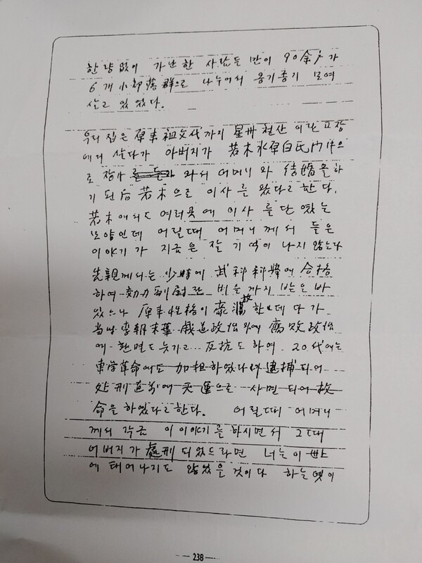 역사의 대하(大河)에는 '딴 얼굴'의 그들이 무수히 떠 있었을 것. 역사를 매조지지 않은 민족의 숙명이겠다. (박정희 회고록의 자필 원고 작성 시기는 5.16 군사 쿠데타 직후 이후로 추정된다. 국가재건최고회의 의장이던 1963년 정읍에서 처음 열린 동학 기념식에서 기념탑을 세웠고, 이후 수운회관 건립에도 도움을 주었다.)