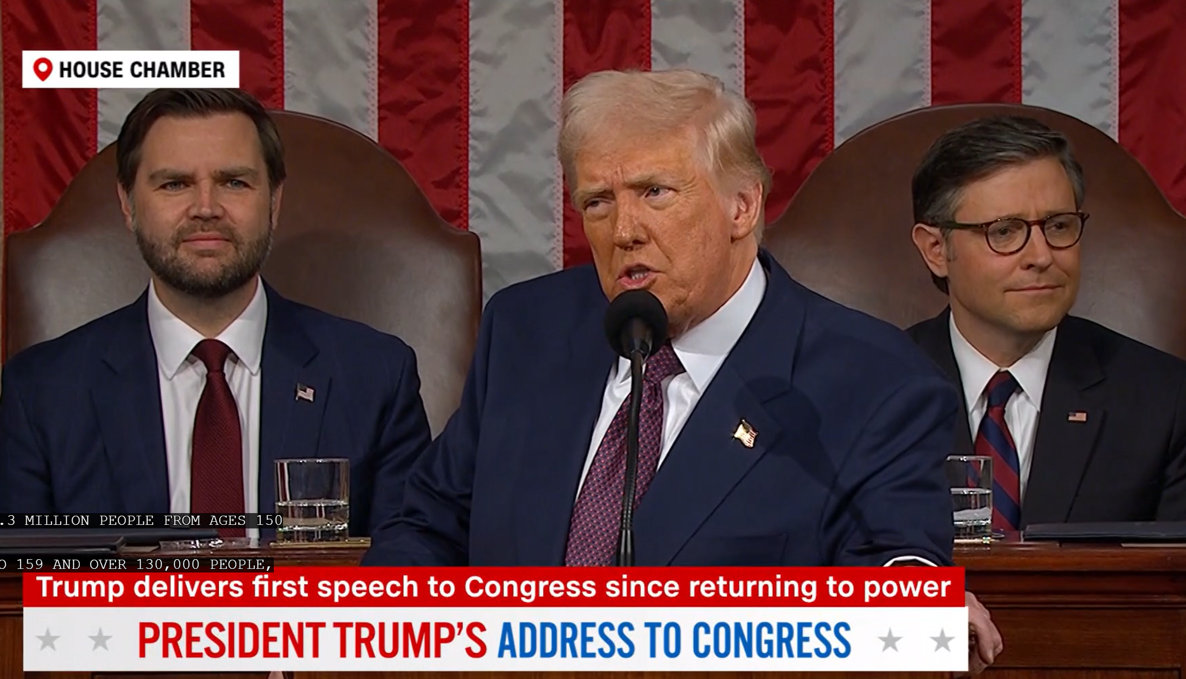 President Trump: Speaker Johnson. Vice President Vance, the first lady of the United States. Members of the United States Congress, thank you very much. And to my fellow citizens, America is back.